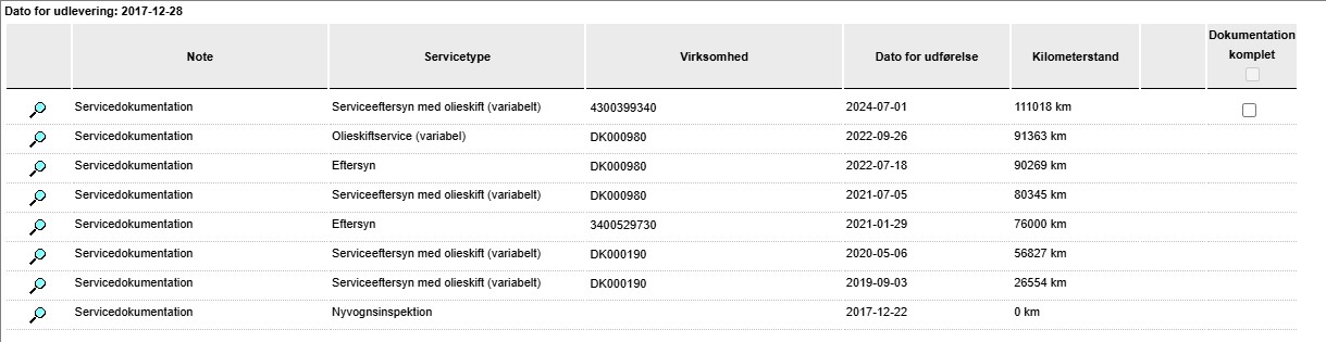 Fabriksudstyr & Servicehistorik