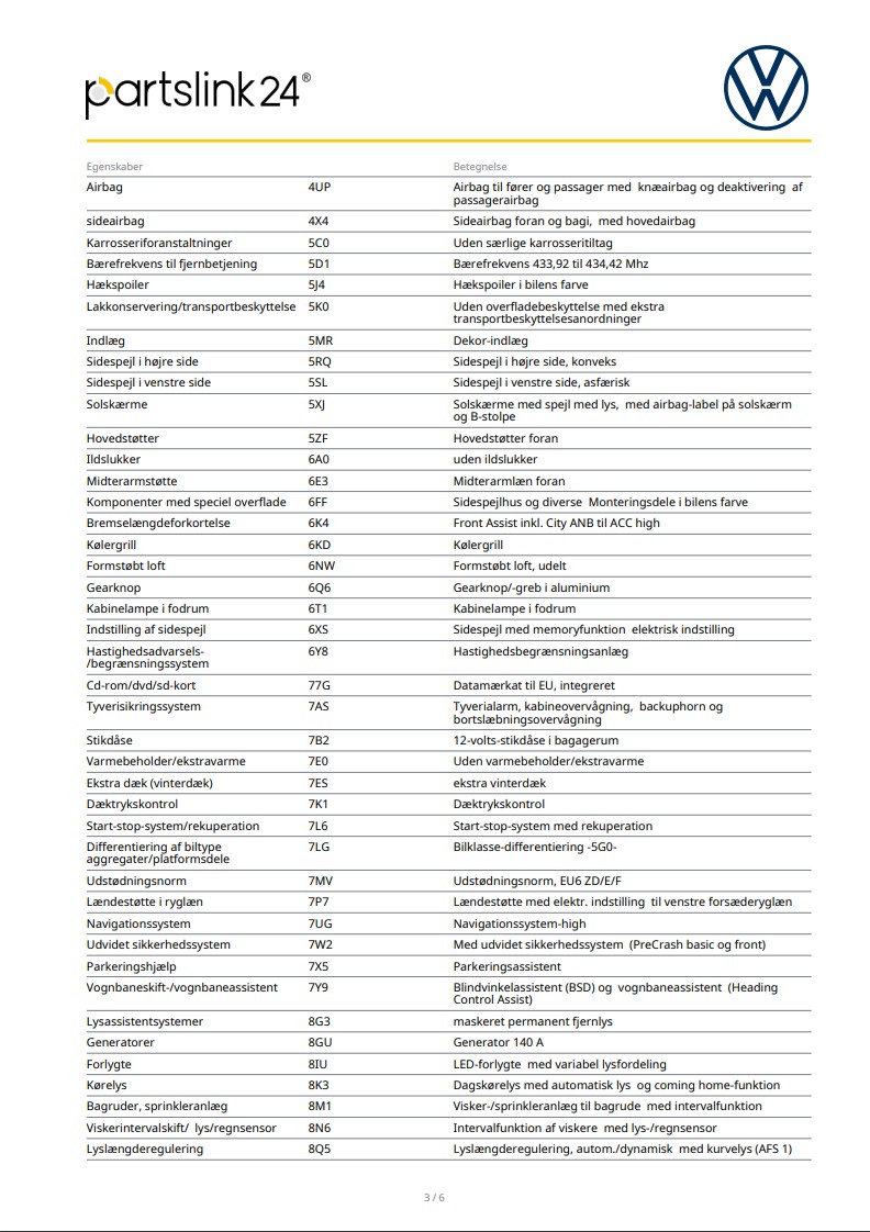 Udstyrsliste: