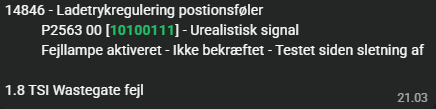 Fejlkoden P2563 opstår, når motorstyringen registrerer, at wastegate-positionen ikke stemmer overens med den ønskede værdi.